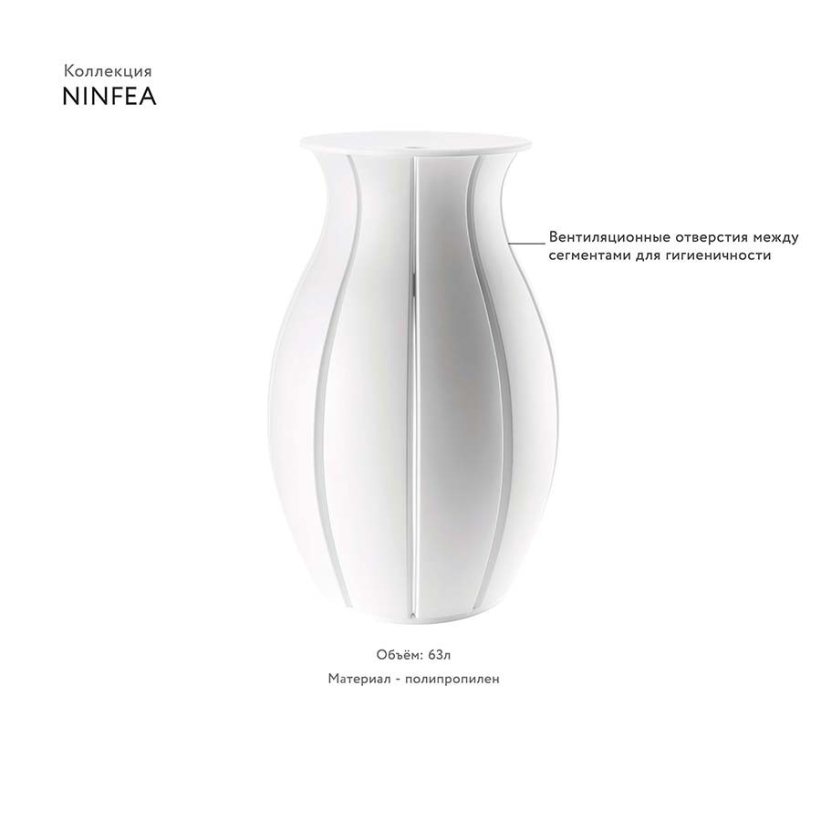 В любой комнате эта корзина Ninfea будет чувствовать себя как дома. В ней можно хранить бельё для стирки, а так же использовать её как общий контейнер для вещей или детских игрушек. Корзина состоит из десяти сегментов, напоминающих лепестки цветка водяной кувшинки - нимфеи. Вентиляционные отверстия между сегментами делают корзину полностью гигиеничной и безопасной. Кроме того, она легко разбирается на части, благодаря чему её удобно мыть, хранить и перевозить. Изготовлена из качественного и прочного пластика, поэтому всегда держит свою форму. Не требует дополнительного внутреннего мешка. Объем 63 л.
