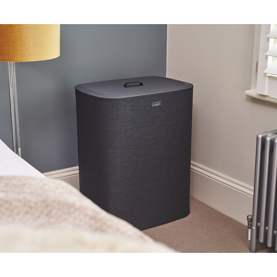 Корзина имеет два отделения по 45 литров, которые помогут разделить светлое и цветное/черное белье. Мешки с удобными ручками легко снимаются. Дополнительные ручки на дне мешков помогают высыпать содержимое наружу. Корзина поставляется с полной инструкцией по сборке.