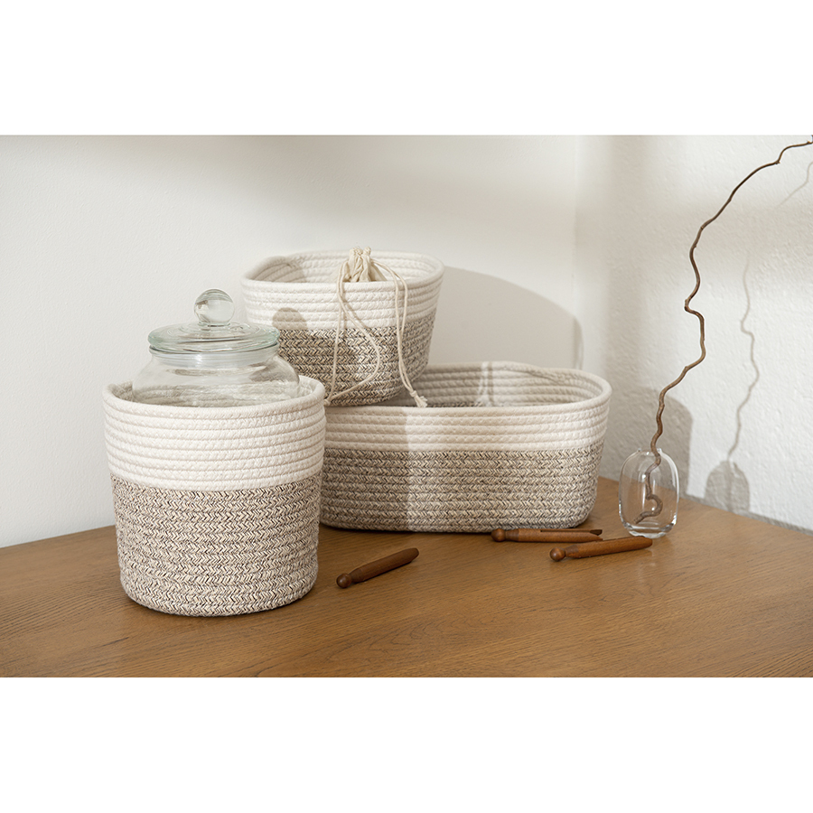 Корзина из хлопкового шпагата Filis – прекрасный вариант для поклонников эко-стиля. Емкость идеально подходит для хранения различных аксессуаров, книг, игрушек, предметов для творчества и прочего. За счет компактных размеров изделие не занимает много места в помещении. Плетеный дизайн сочетается с большинством интерьерных стилей: кантри, прованс, эклектика, фьюжн и др. Материал изготовления является экологичным, отличается прочностью и устойчивостью к износу.