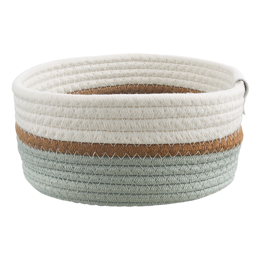 Lucy – стильная и удобная корзина для хранения небольших предметов: инструменты для творчества и рукоделия, различные аксессуары и прочее. Изюминку изделию придают плетеный корпус и интересное цветовое решение. Сочетание хлопка и полиэстера отличается экологичностью, высокой устойчивостью к износу, легко очищается от загрязнений. Компактные размеры позволяют разместить такой контейнер для хранения в любом удобном месте – на столе, тумбе, подоконнике, стеллаже или полке.