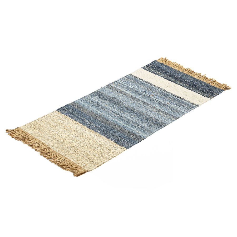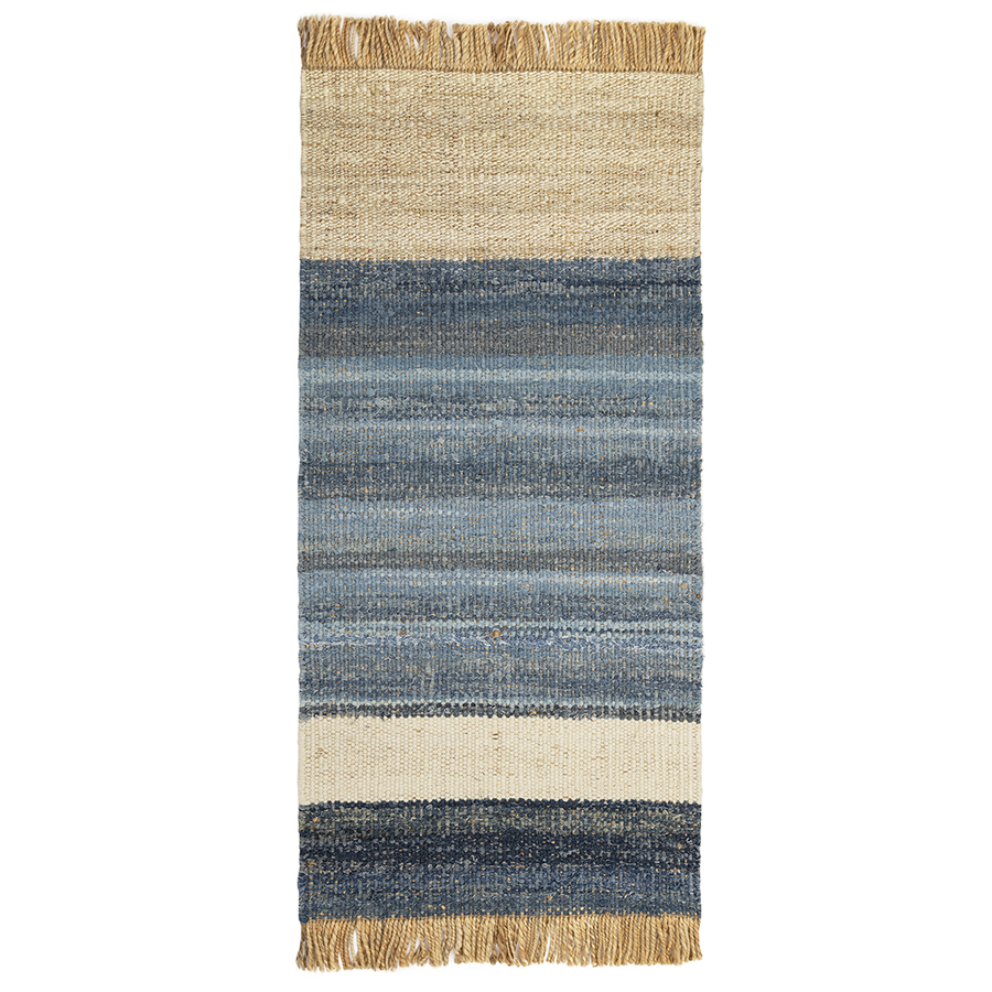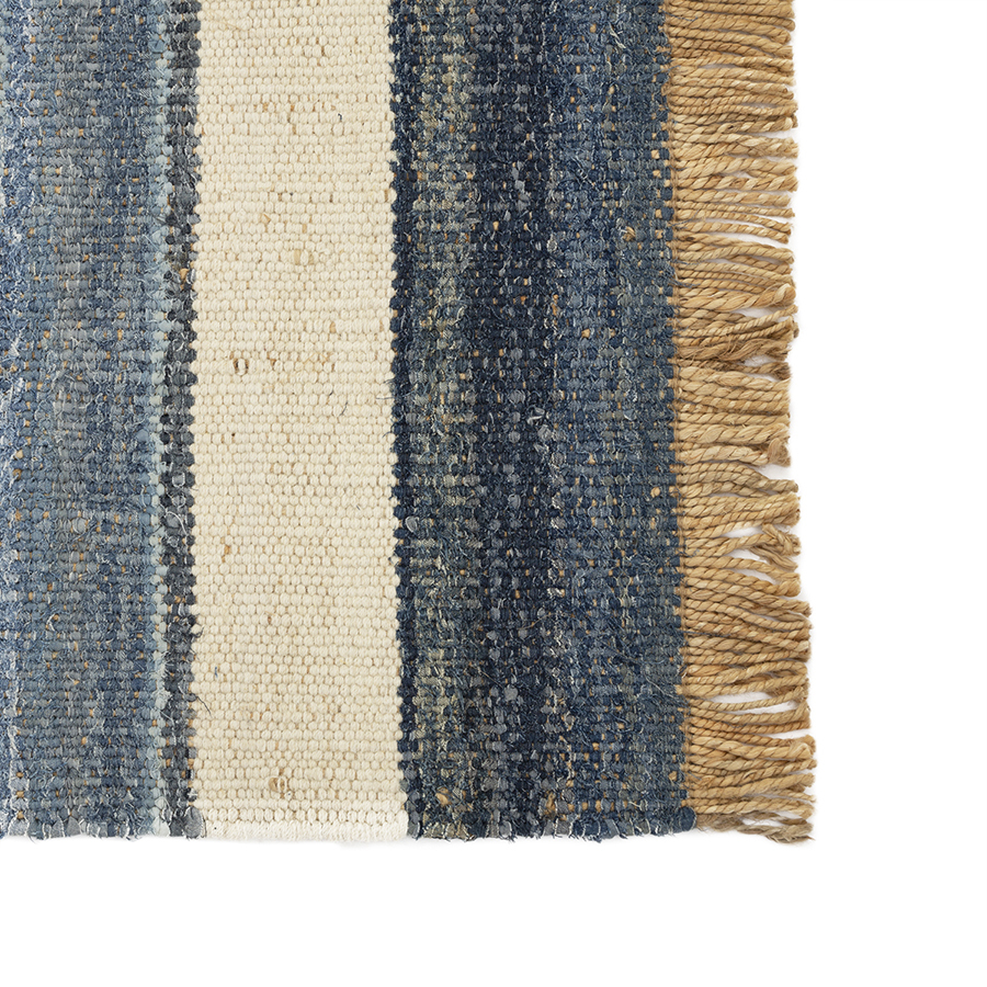 Ковер Hyderabad из коллекции Ethnic отлично смотрится в современных интерьерах и эклектичных пространствах. Одним из главных достоинств дизайна является сочетание трех уникальных материалов. Джут делает это напольное покрытие практичным и долговечным, обеспечивая стойкость к износу и сохраняя его первоначальную форму на протяжении долгого времени. Деним добавляет в оформление модный акцент. Шерсть придает изделию мягкость, создавая приятное ощущение под ногами. Благодаря натуральной цветовой палитре ковер прекрасно гармонирует с мебелью и предметами интерьера любых оттенков.