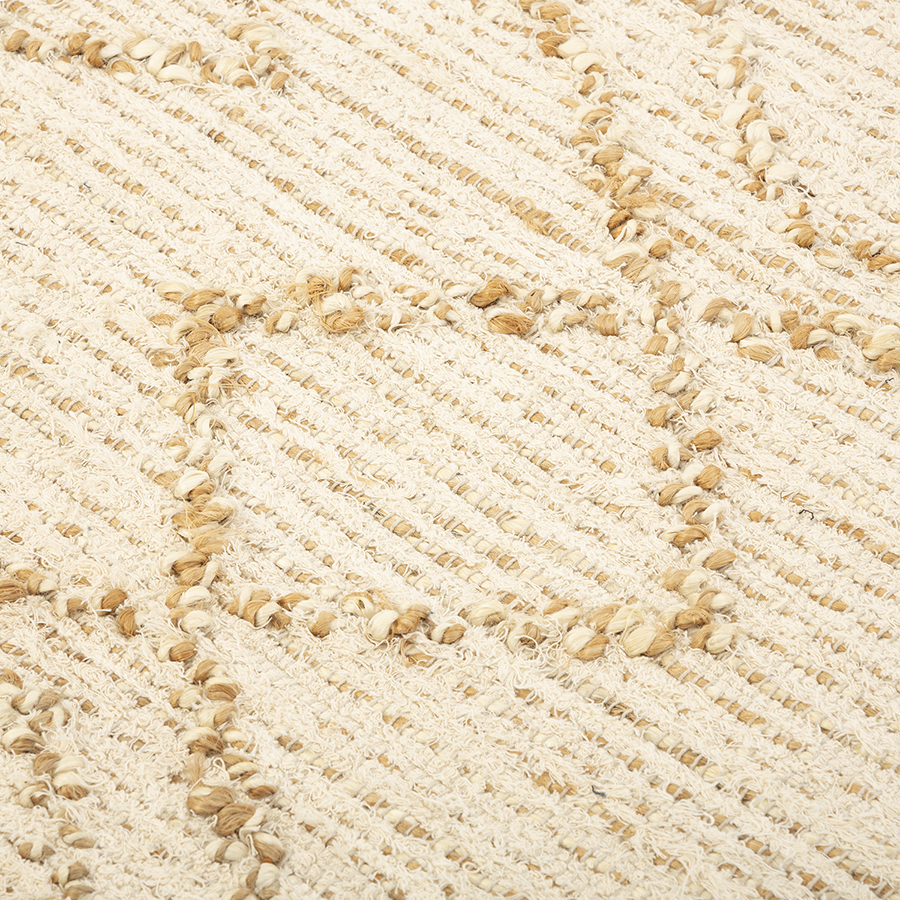 Ковер Kolkata из коллекции Ethnic – прекрасный выбор для ценителей натуральных материалов и эклектичного дизайна. Использование такого простого акцента поможет сделать любое помещение более уютным, комфортным и уникальным. Сочетание джута и переработанного хлопка обеспечивает изделию высокую прочность, практичность и долговечность. Материалы являются экологичными, не требуют сложного ухода. Спокойная цветовая гамма и ненавязчивый узор позволяют легко интегрировать ковер в любое пространство и создавать гармоничные композиции с другими предметами интерьера.