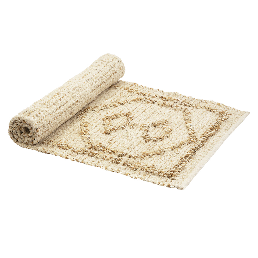 Небольшая разница в цвете и фактуре джута и переработанного текстиля в разных частях ковра делает каждое изделие уникальным. У новых напольных покрытий может присутствовать естественный запах, он абсолютно безопасен и при частом проветривании быстро исчезает. После вскрытия упаковки ковер в течение некоторого времени может сохранять элементы деформации вследствие долгого нахождения в скрученном виде, но уже через 1-2 недели он полностью выпрямится. Ковер может выцветать под воздействием прямых солнечных лучей. Рекомендуем периодически менять расположение изделия, чтобы цвет менялся равномерно.