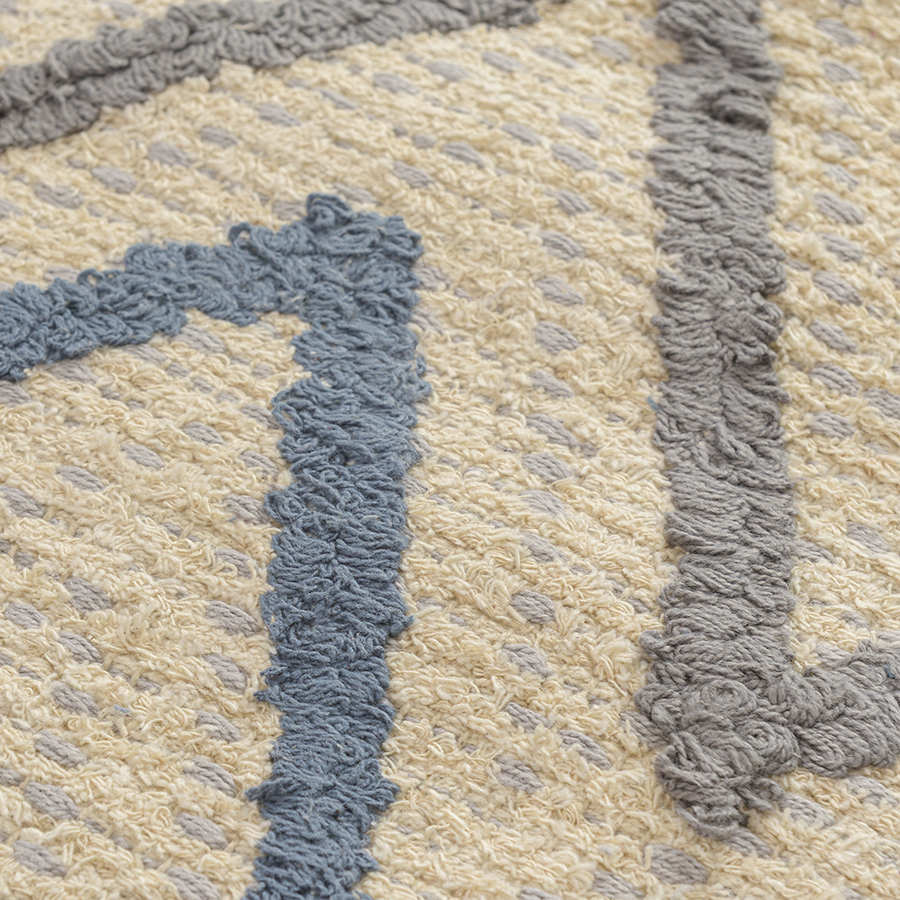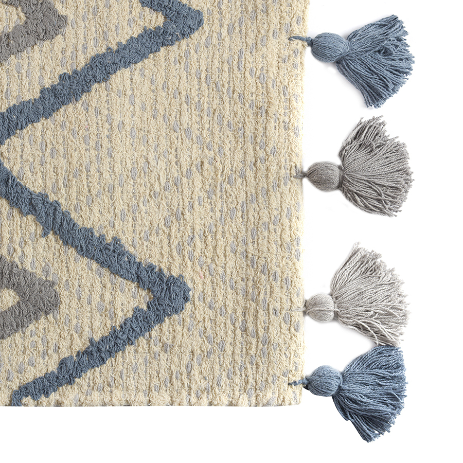 Ковер из хлопка Agra из коллекции Ethnic впишется в любой современный интерьер. Модель украшена кисточками в серо-синей гамме по коротким сторонам. Выразительный зигзагообразный рисунок выткан по принципу градиента и становится более контрастным ближе к краю. Ковер представлен в двух размерах.