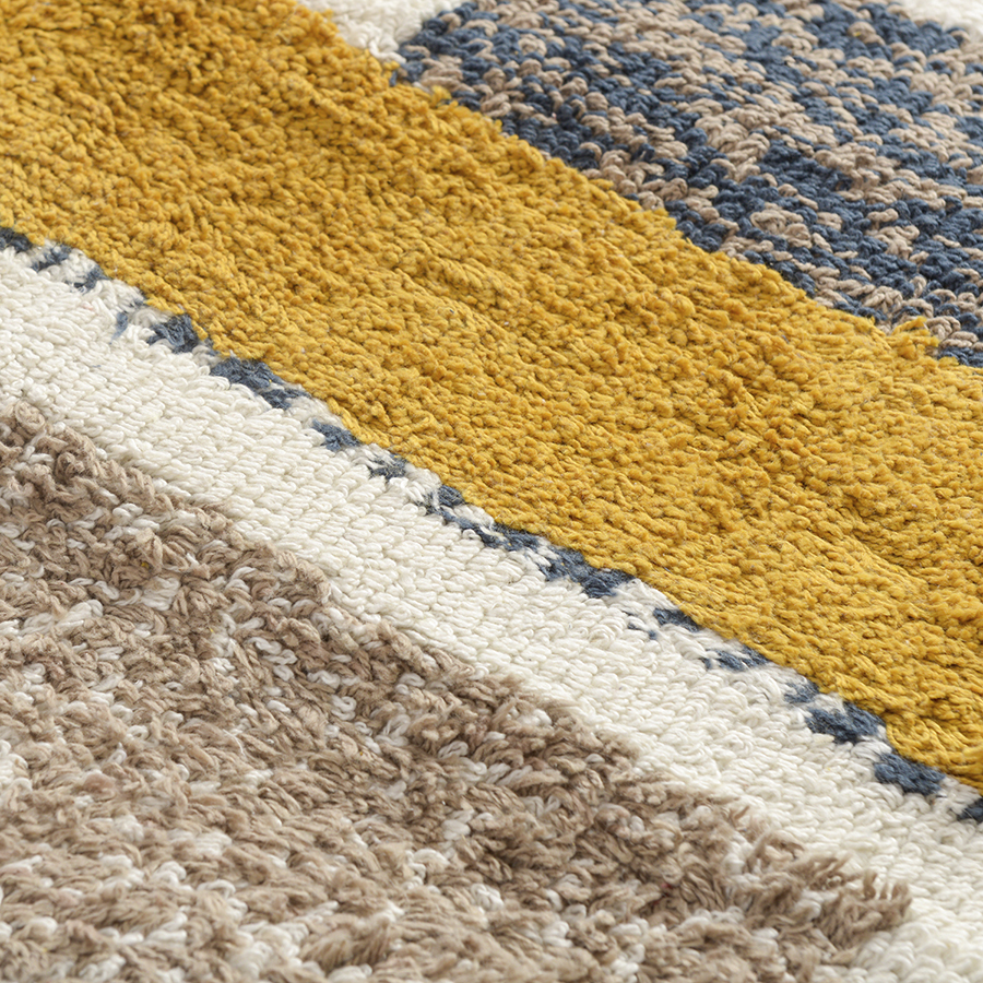 Этот экологичный ковер изготовлен из переработанного материала, поэтому каждое изделие уникально в своем цвете, стиле и текстуре. Небольшая разница в цвете и фактуре переработанного текстиля в разных частях ковра делает каждое изделие уникальным и особенным. После того, как Вы достали новый ковер из упаковки, он может лежать не совсем ровно, но выпрямится через несколько недель.