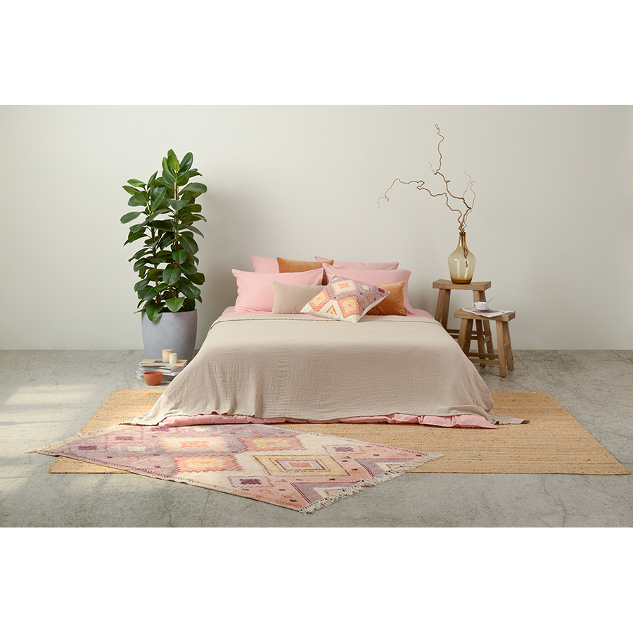Этот экологичный ковер выполнен из переработанного материала, поэтому каждое изделие имеет неповторимый вид. Небольшая разница в цвете и фактуре текстиля в разных частях ковра делает его уникальным и особенным. После того, как Вы достали новый ковер из упаковки, он может лежать не совсем ровно, но выпрямится через несколько недель.