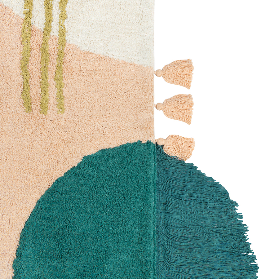 Этот экологичный ковер выполнен из переработанного материала, поэтому каждое изделие имеет неповторимый вид. Небольшая разница в цвете и фактуре текстиля в разных частях ковра делает его уникальным и особенным. После того, как Вы достали новый ковер из упаковки, он может лежать не совсем ровно, но выпрямится через несколько недель.