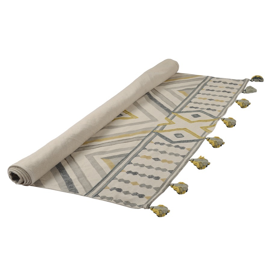 Ковер из хлопка с контрастным узором и кисточками из коллекции Ethnic органично впишется в любой интерьер: от минимализма и фьюжн, до скандинавского и бохо. Изделие с этническими мотивами выполнено из высококачественного и прочного хлопка. Станет ярким акцентом в детской и любой другой комнате. Ковер с объемными кисточками представлен в нескольких размерах. Плотность - 900 г/м2.