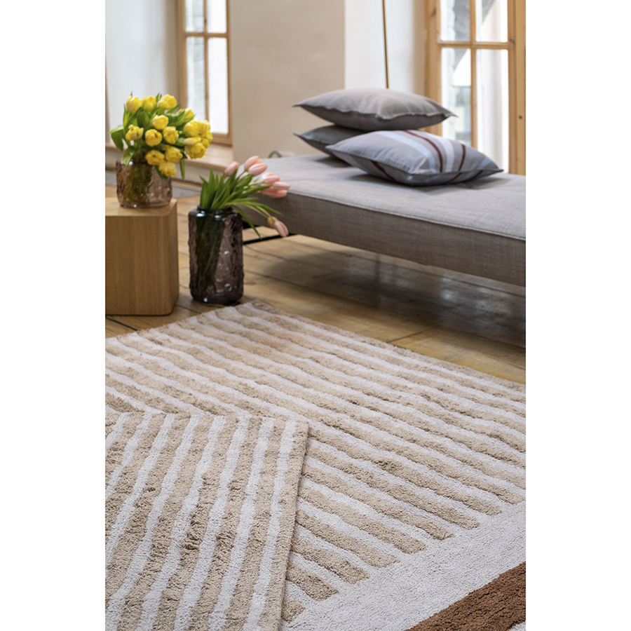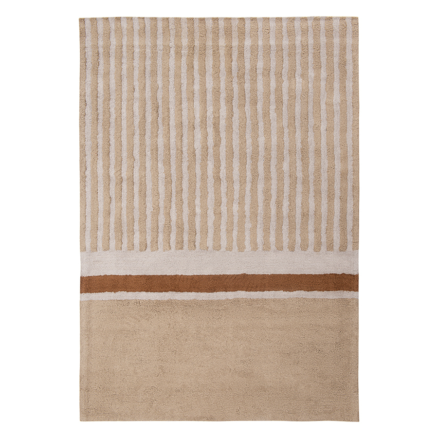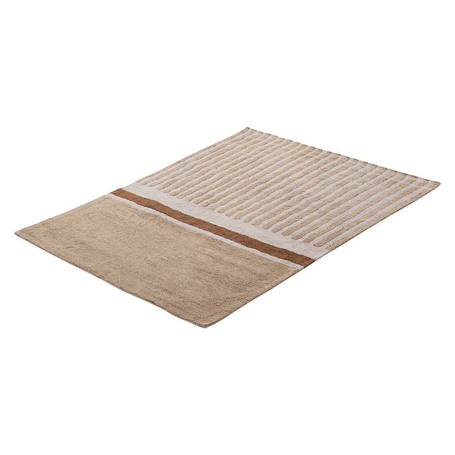 Ковер ворсовый из хлопка с рисунком Tulip garden бежевого цвета из коллекции Terra сделает интерьер гостиной, спальни, прихожей или рабочего кабинета более уютным и оригинальным. Благодаря тафтинговой технологии производства покрытие отличается высокими показателями износостойкости и красивым рельефным узором. В основе принта – ровные линии полей тюльпанов в Голландии, видимые с высоты птичьего полета. Ворс из 100% хлопка дарит приятные тактильные ощущения для босых ног. Натуральный материал и природная цветовая палитра – идеальное решение для тех, кто с теплом и трепетом относится к своему жилому пространству. Плотность - 2500 г/м2. Высота ворса - 10 мм.
