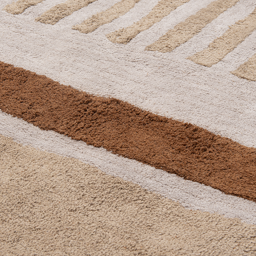 Ковер ворсовый из хлопка с рисунком Tulip garden бежевого цвета из коллекции Terra сделает интерьер гостиной, спальни, прихожей или рабочего кабинета более уютным и оригинальным. Благодаря тафтинговой технологии производства покрытие отличается высокими показателями износостойкости и красивым рельефным узором. В основе принта – ровные линии полей тюльпанов в Голландии, видимые с высоты птичьего полета. Ворс из 100% хлопка дарит приятные тактильные ощущения для босых ног. Натуральный материал и природная цветовая палитра – идеальное решение для тех, кто с теплом и трепетом относится к своему жилому пространству. Плотность - 2500 г/м2. Высота ворса - 10 мм.