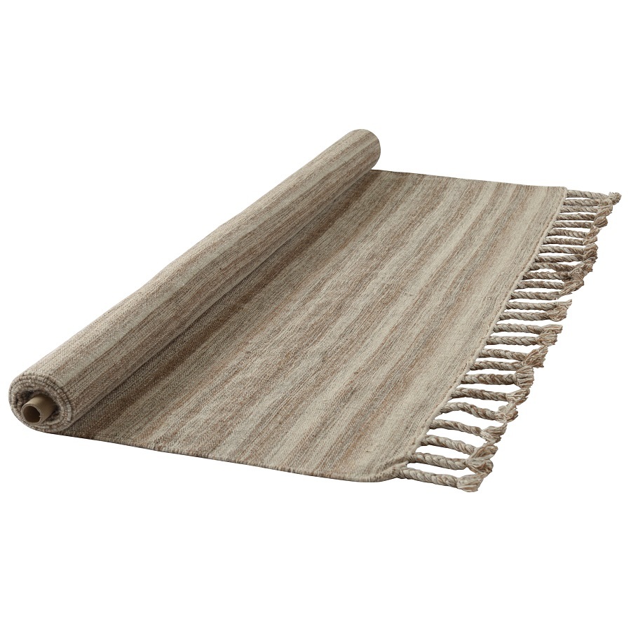 Ковер из шерсти и хлопка с кисточками из коллекции Ethnic бежевого цвета дополнит любой современный интерьер и сделает его уютнее. Изделие выполнено из натуральных материалов и представлено в нескольких размерах. Плотность - 1200 GSM.