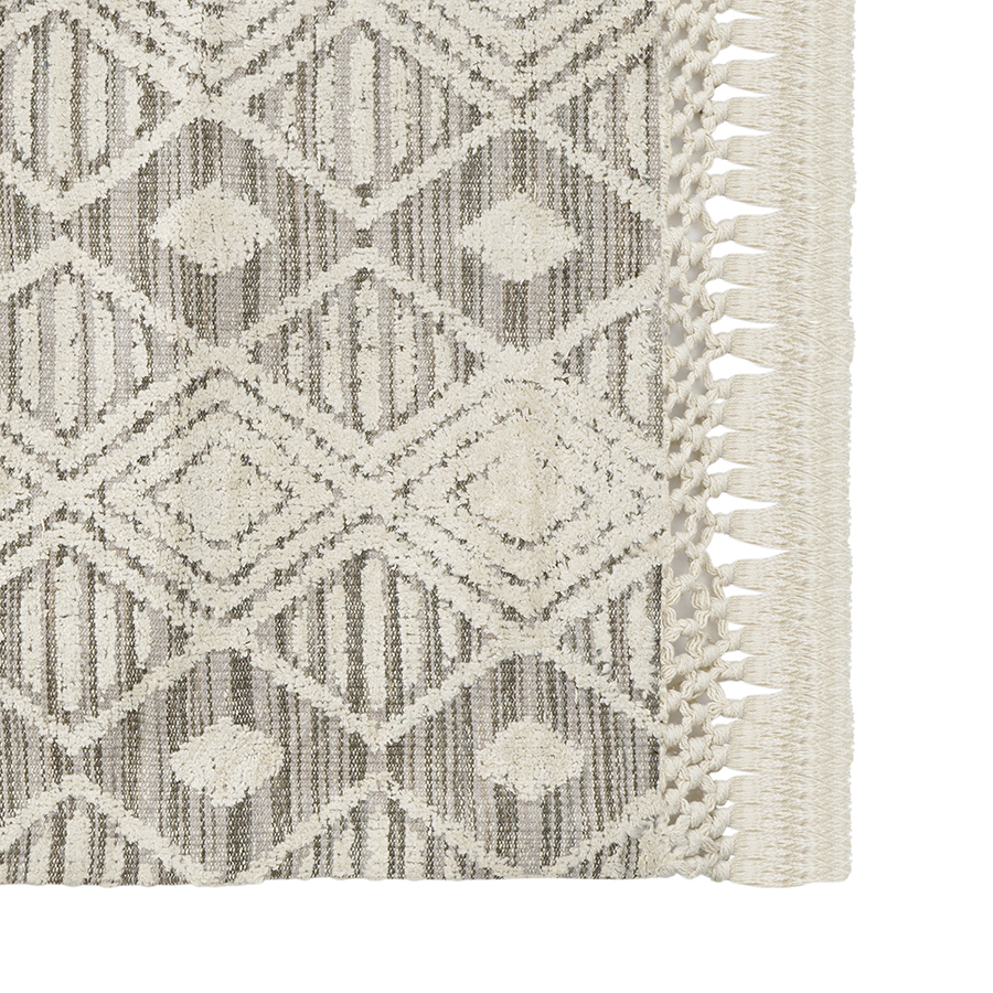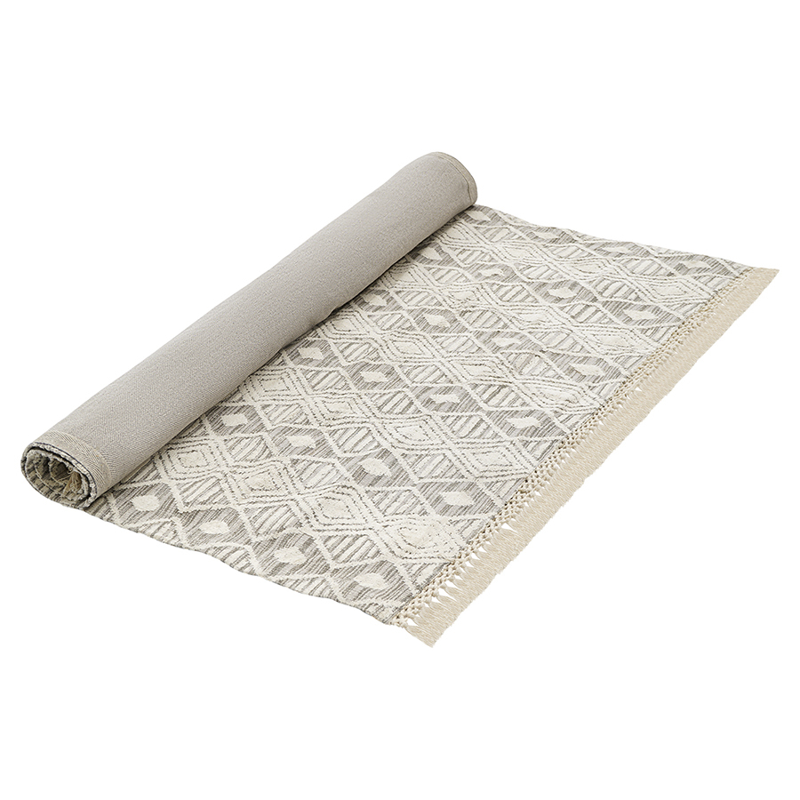 Ковер Chennai из коллекции Ethnic декорирован контрастным орнаментом и бахромой. Благодаря интересному дизайну в этно-стиле такой декоративный акцент добавит ощущение уюта и оживит интерьер, поможет разделить пространство на зоны и легко объединить различные стили. Изделие из 100% хлопка отличается привлекательным внешним видом и прекрасными эксплуатационными характеристиками. Материал является экологичным, прочным, не вызывает аллергию, не электризуется и сохраняет первоначальные качества долгие годы. Ковер будет отлично смотреться на полу в гостиной, спальне, кабинете и любых других комнатах.