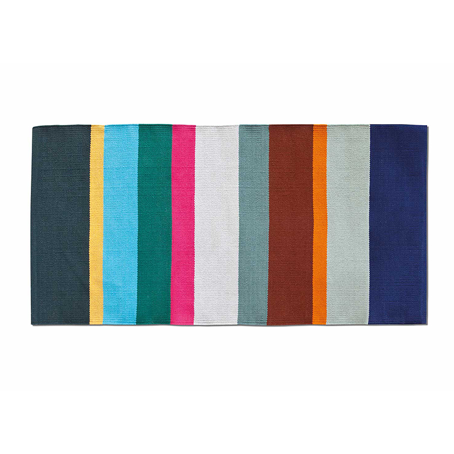 Яркий полосатый коврик станет оригинальным акцентом в интерьере комнаты.