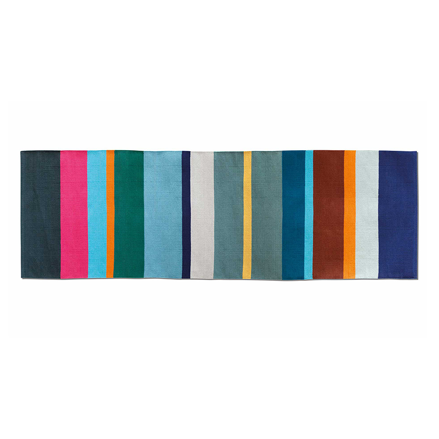 Яркий полосатый коврик станет оригинальным акцентом в интерьере комнаты.
