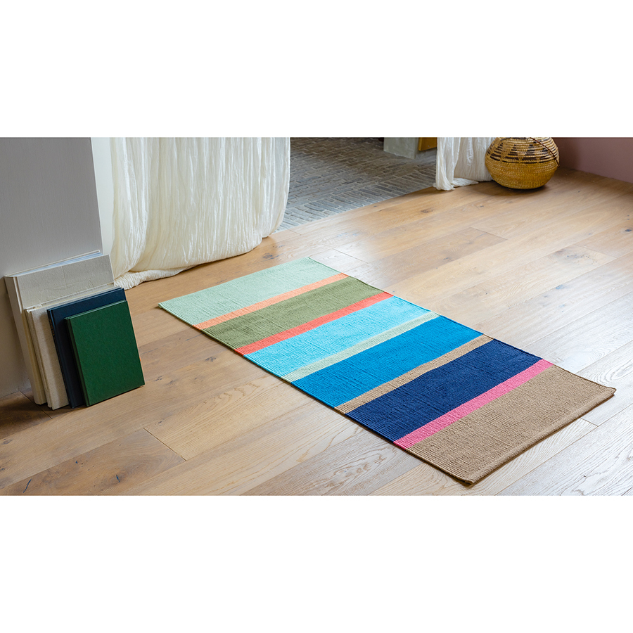 Коврик соткан вручную из натурального хлопка. Изделие отличеется прочностью и долговечностью.