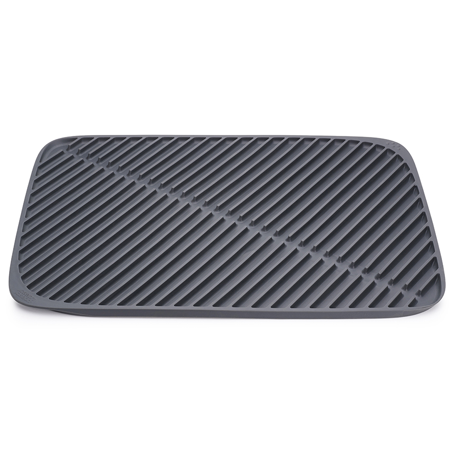 Благодаря резиновым ребрам, вода стекает прямо в центральный желоб. Чтобы аккуратно слить ее, достаточно просто приподнять уголки по обеим сторонам коврика и наклонить его в раковину. Мягкая резиновая поверхность защищает хрупкую посуду от повреждений. Материал не содержит бисфенол-А.