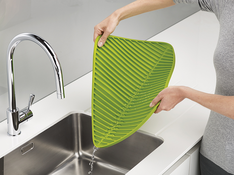 Удобный резиновый коврик помогает поддерживать порядок в зоне раковины: служит в качестве дополнительной сушилки при большом объеме посуды.