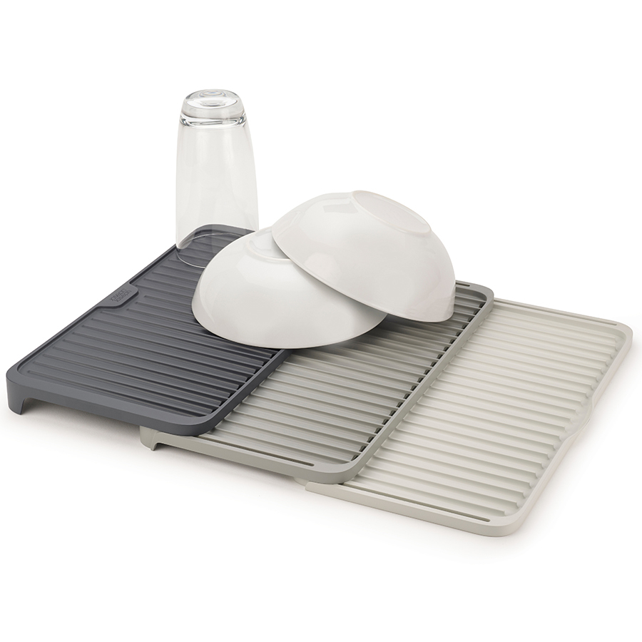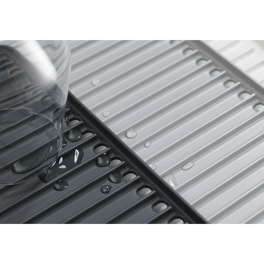 Коврик раздвигается, чтобы обеспечить больше пространства для сушки посуды , и складывается для удобного хранения. Специальные желобки отводят влагу, ускоряя процесс сушки.