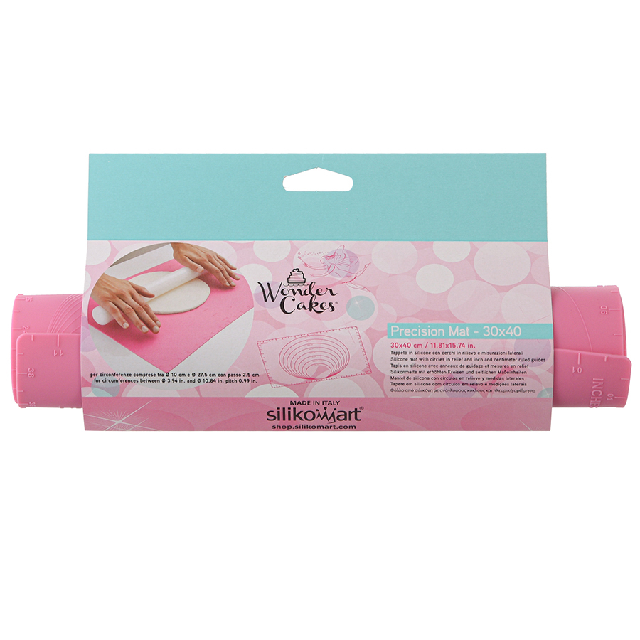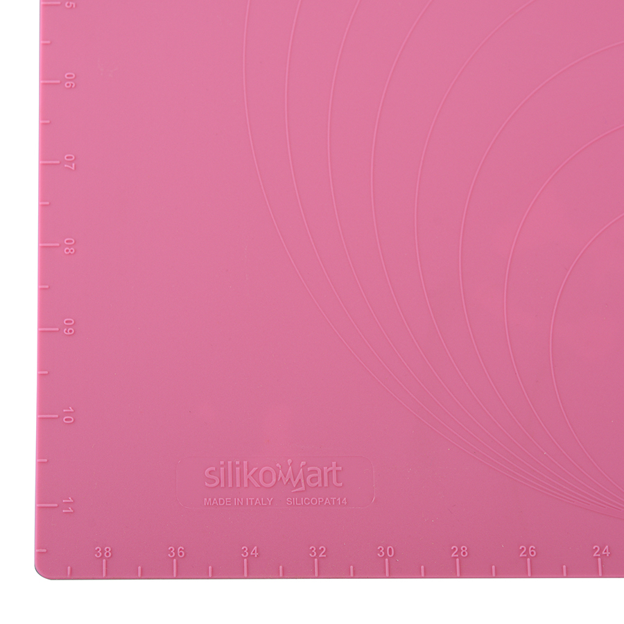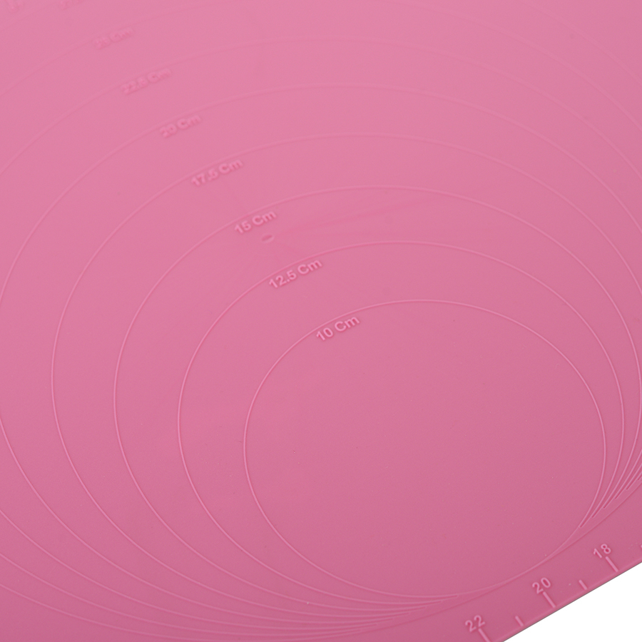 Силиконовый коврик с рельефными кругами и мерными делениями идеально подходит для контроля размеров теста при раскатывании.