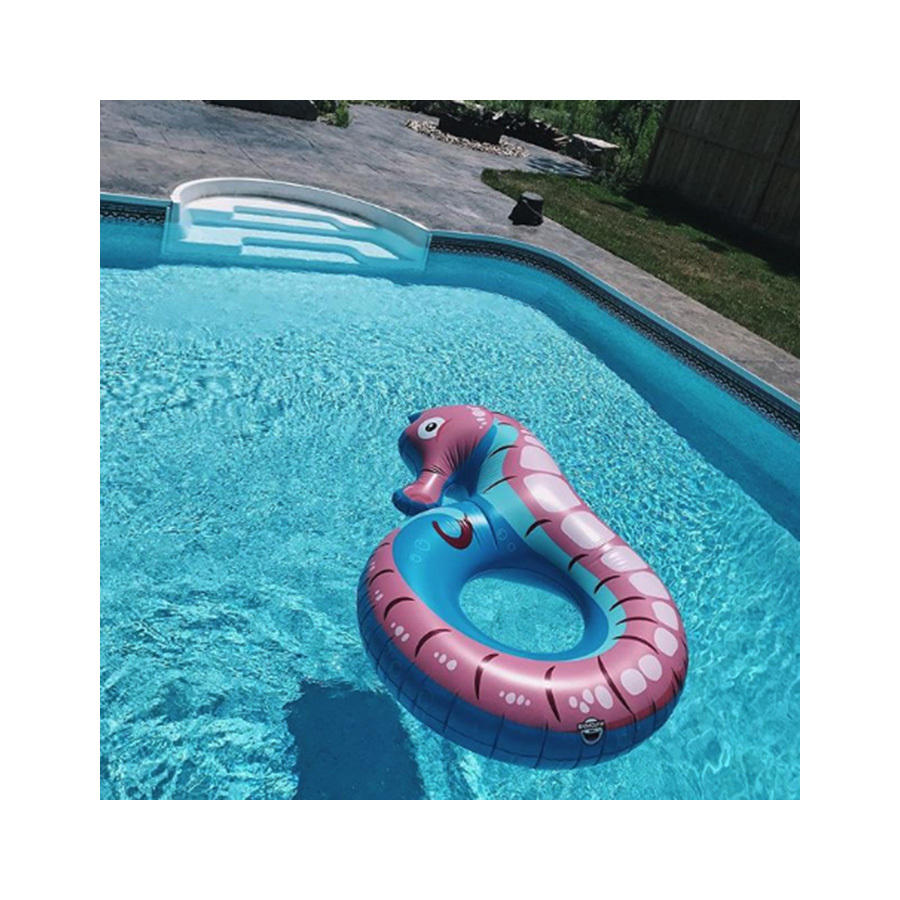 Надувной круг Seahorse – идеальное решение для пляжного отдыха и вечеринки у бассейна. Необычный дизайн и яркое оформление аксессуара привлекает внимание, поэтому он может стать отличным дополнением к летней фотосессии. Круг изготовлен из экологически безопасного винила, который отличается прочностью и стойкостью к механическим повреждениям. Изделие оснащено удобным клапаном с системой защиты от случайного спускания воздуха. Круг не поддается влиянию солнечных лучей и выдерживает нагрузку до 100 кг.