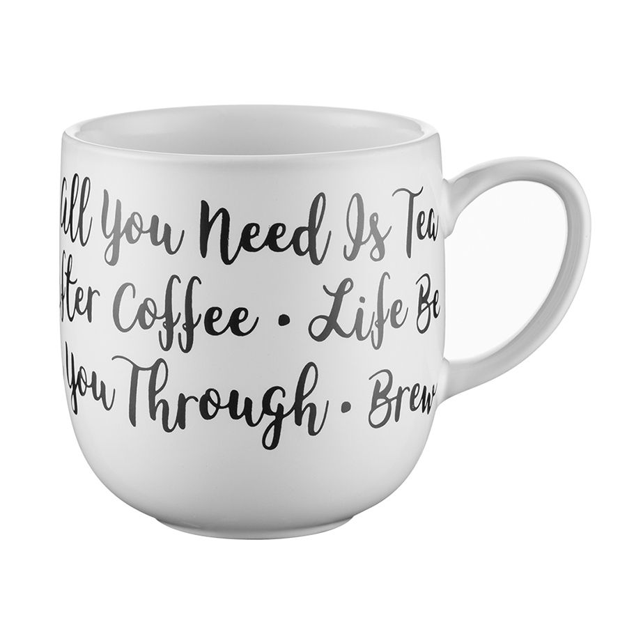 Кружка с забавной каллиграфической надписью на контрастном фоне прекрасно подойдет для подачи любимых напитков и станет стильным акцентом на вашем столе.