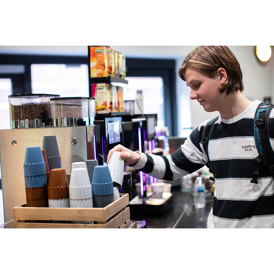 Кружка хорошо держит температуру напитка, при этом не нагреваясь. Аксессуар изготовлен из прочного ударостойкого материала, который не содержит бисфенол-А и меламин. Изделие легко превращается в кружку для кофе с собой при наличии крышки, которая приобретается отдельно. Кружка хорошо сочетается с другими предметами линейки Connect.
