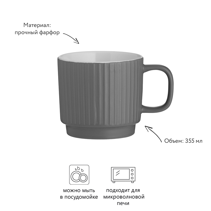 Кружка Embossed объемом 355 мл подарит незабываемые минуты наслаждения горячими напитками. В ней любимый чай с лимоном, кофе, шоколад или капучино покажется вкуснее и ароматнее. Для украшения посуды дизайнеры используют утонченное тиснение и современную матовую отделку.