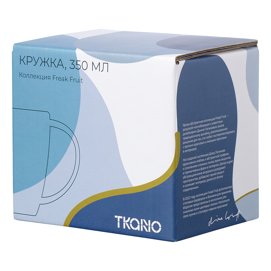 Кружка синего цвета с авторским принтом из коллекции Freak Fruit прекрасно подходит для подачи горячих и холодных напитков. Оригинальный дизайн в духе абстракционизма сделает теплее атмосферу за столом. Принт не имеет повторяющегося раппорта и представляет собой единую законченную картину.