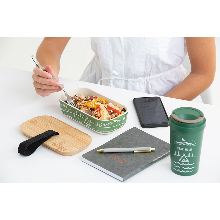 Изделие выполнено из пшеничного волокна - инновационного биоразлагаемого материала, устойчивого к механическим повреждениям. Кружка плотно закрывается, исключая риск протекания.