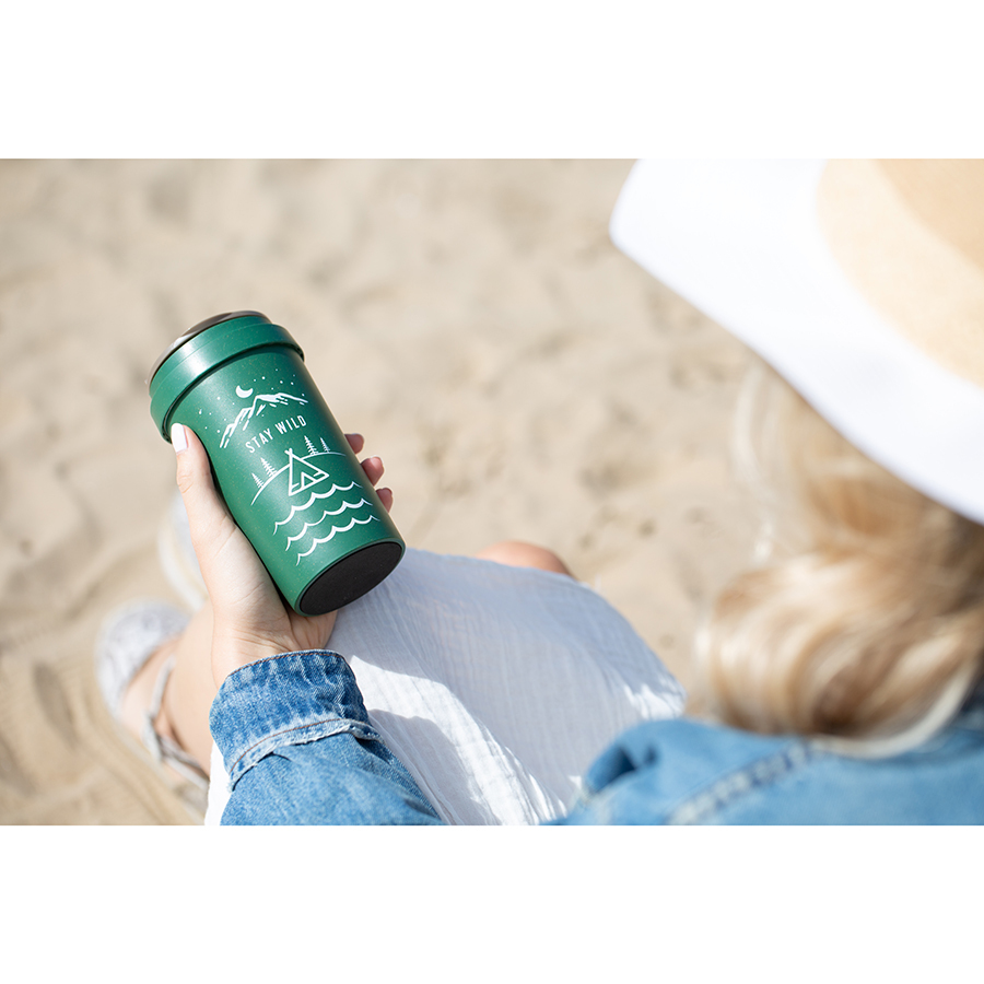 Стильная, экологичная кружка позволит носить любимые напитки с собой.