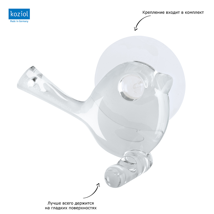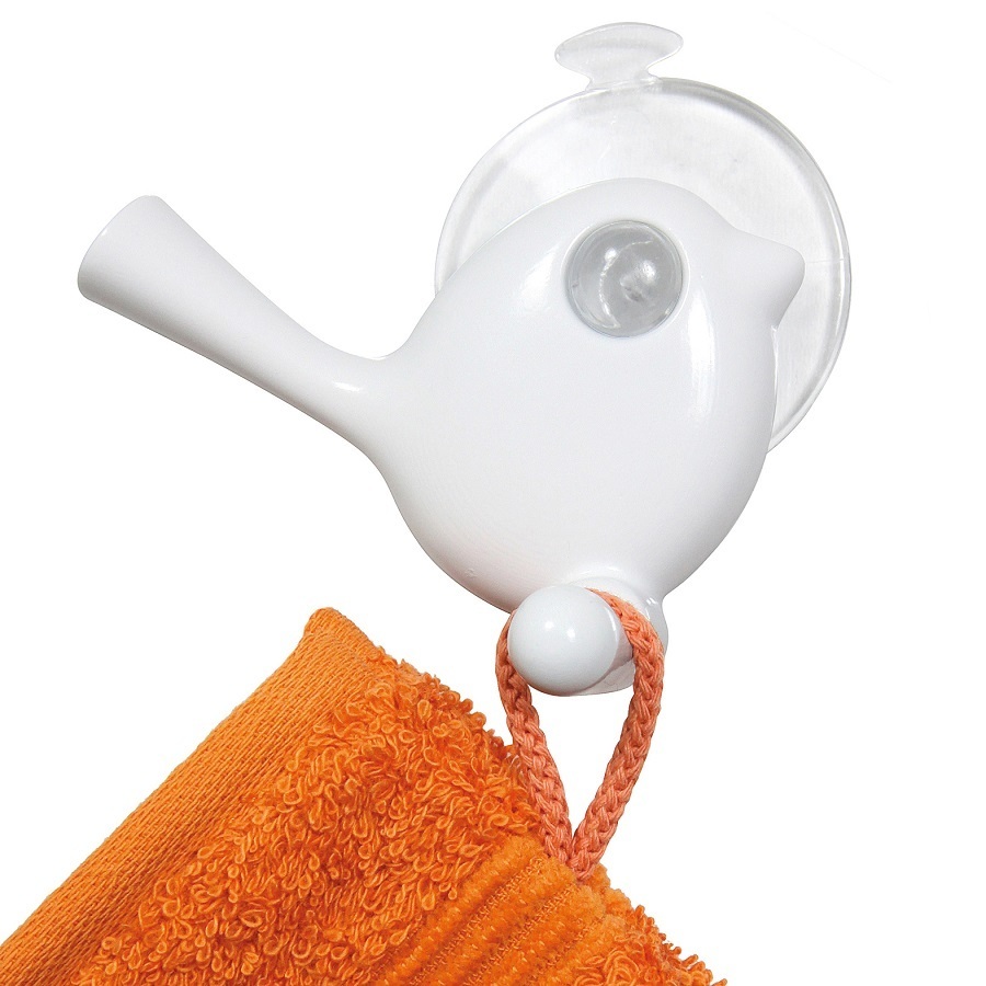 Крючок для душа настенный PIEP – милый аксессуар для ванной комнаты, который придется по душе любителям необычных элементов декора. Маленькая птичка будто только что упорхнула с ветки – этот крючок понравится как малышам, так и взрослым. Особенности: - присоска в комплекте - лучше всего прилипает к гладким поверхностям Производство: Германия