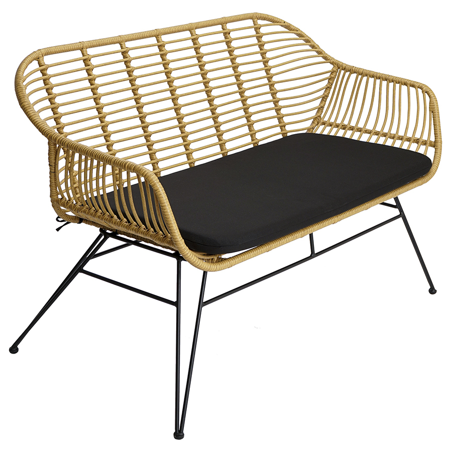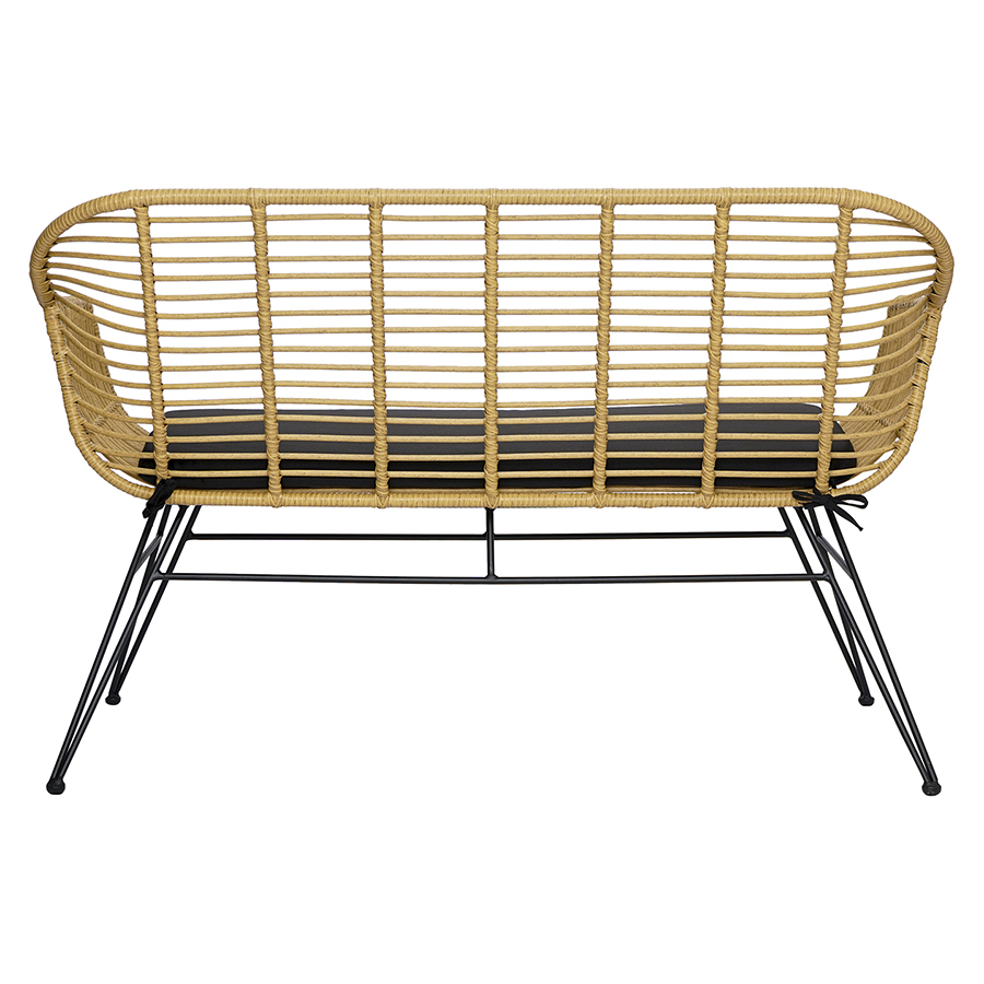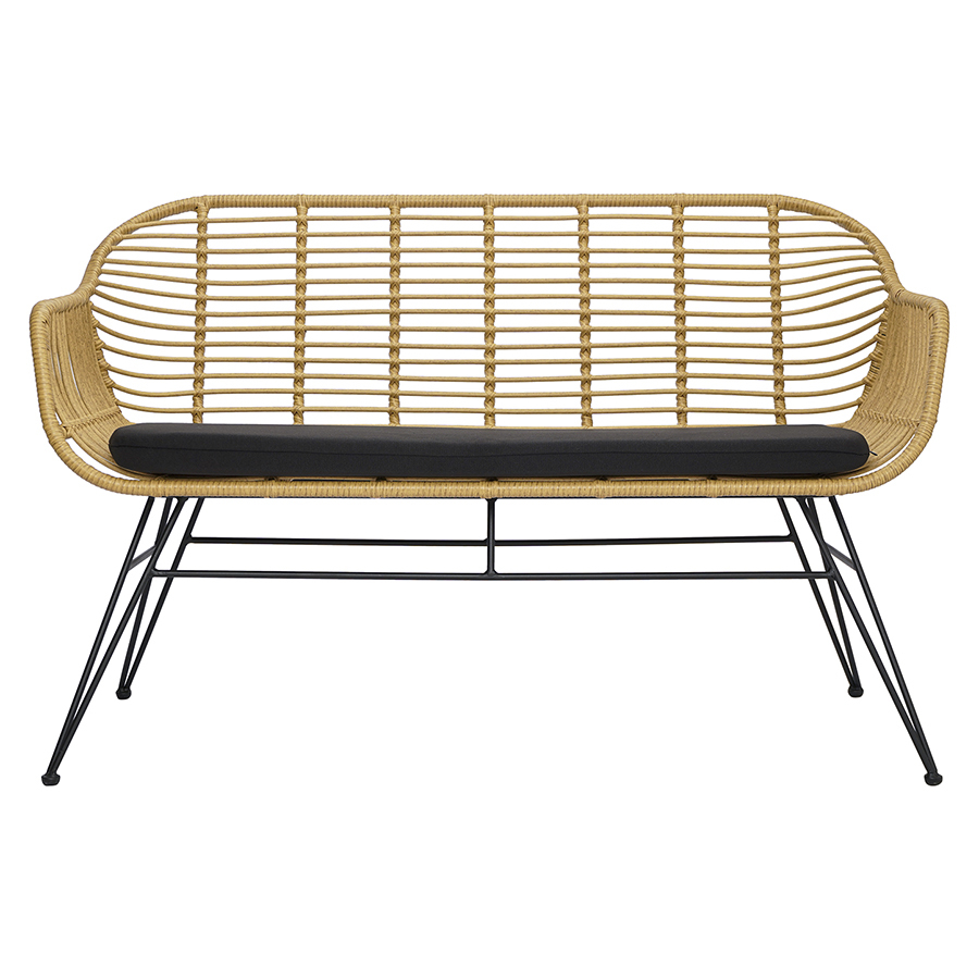 Материал: искусственный ротанг, сталь, полиэстер, пенополиуретан. Размеры: 125х68х81 см. Высота сиденья: 39 см. Расстояние между ножками: 122 см и 62 см. Высота подушки: 4 см.