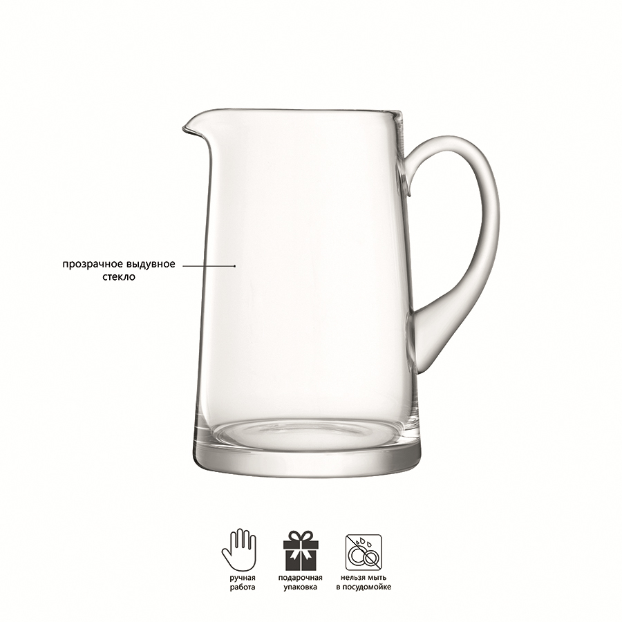 Конусообразный кувшин Bar – это элегантная посуда для классической сервировки стола. Традиционная форма и абсолютно прозрачное, с яркой искринкой стекло делают кувшин универсальным для различных напитков. Вы можете налить в него рубиновый вишневый или солнечный апельсиновый соки, простую воду с кусочком лайма, любой напиток будет смотреться аппетитно и эффектно. Материалы: выдувное стекло. Изделие рекомендуется мыть вручную в тёплой мыльной воде и вытирать насухо мягкой тканью. Мелкие пузырьки внутри выдувного стекла не являются браком (круглые пузырьки < 3 мм и овальные пузырьки < 5 мм): это допустимые индивидуальные особенности изделий, изготовленных вручную. Размеры: объем – 1,9 л.