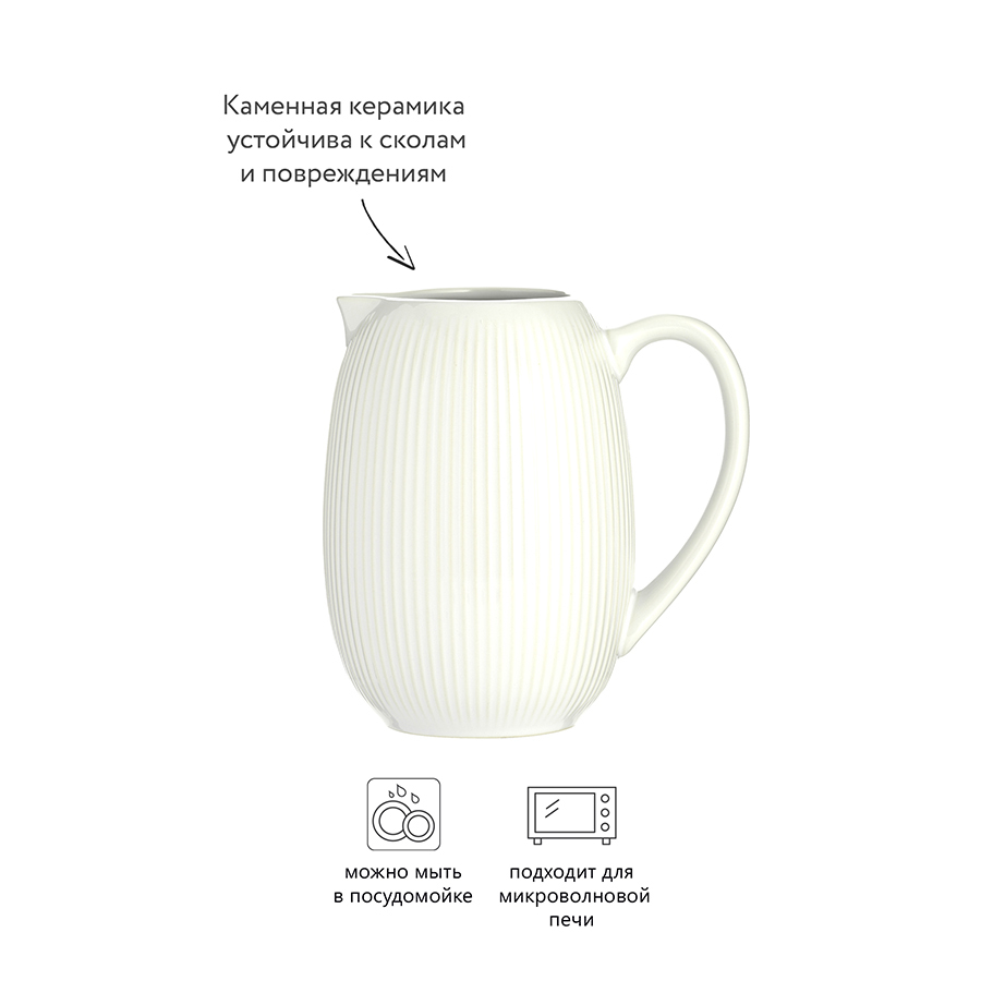 Кувшин Linear объемом 900 мл подходит для воды, молока, фруктовых соков и охлажденных напитков. Для оформления дизайнеры используют рифленое тиснение, которое придает посуде утонченность и делает её оригинальным украшением стола.