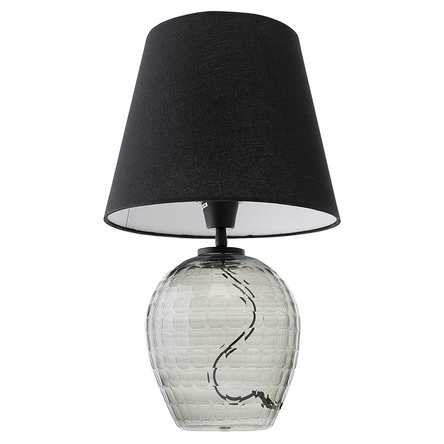 Материалы: стекло, железо, хлопок. Размеры: 19х19х32 см. Длина провода: 1,5 м. Цвет: серый/черный. Тип цоколя: Е27. Максимальная мощность лампы: 40 Вт. Степень пылевлагозащиты: IP20. Площадь освещения: 2,7 кв.м. Лампы в комплекте: нет.