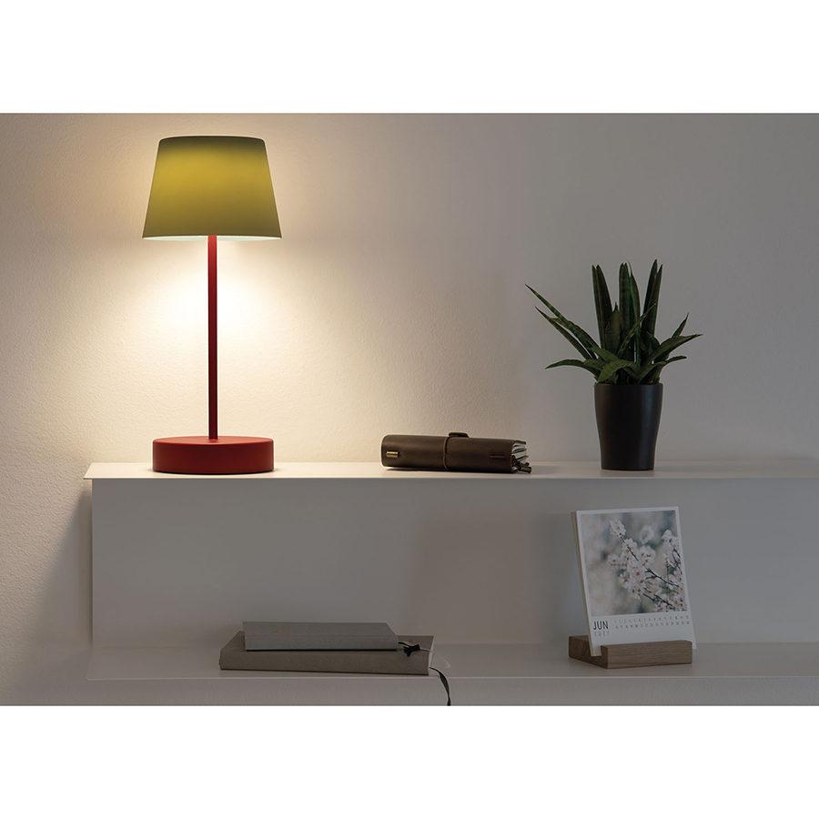 Светильник заряжается от USB-кабеля длиной 50 м. Он работает автономно до 50 часов, поэтому его можно свободно перемещать по дому или выносить на улицу. Лампа излучает теплый белый свет (3000 К), имеет три уровня яркости. Яркость: 255 lm. Высота: 33,5 см. Диаметр: 14,5 см. Лампочки не подлежат замене.