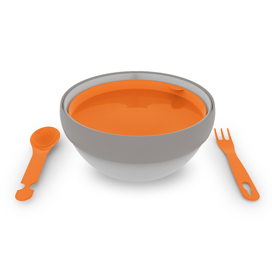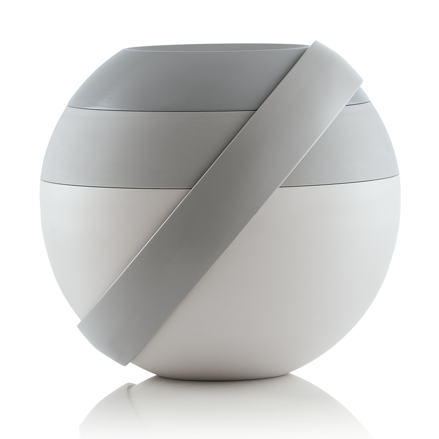 Ланч-бокс Zero является продолжением знаменитой линейки дизайнерских объектов от Guzzini, форма которых представляет собой шар. Он создан специально для тех, кто любит перекусить на ходу и хочет получать полезные вещества и ингредиенты, даже если находится в дороге. Он состоит из двух герметичных и вместительных чаш с крышкой, между которыми помещаются столовые приборы. Небольшая третья чаша сверху предназначена для соусов и приправ. При желании пластиковые вилка и ложка соединяются в удобные щипцы для салата. Ланч-бокс открывается и закрывается с помощью стильной ручки-пояса, которая также может менять свое положение. Когда пояс расположен вертикально, ланч-бокс закрыт и готов для транспортировки. Если нужно поставить его на поверхность, то наклоните ручку немного вбок, а для открытия приведите в горизонтальное положение. Ланч-бокс отлично подойдет для салатов, легких закусок, орехов и фруктов. Объем средней чаши - 388 мл. Нижней - 780 мл. Не содержит вредных примесей и бисфенола-А. Можно мыть в посудомоечной машине. Не использовать в микроволновой печи.