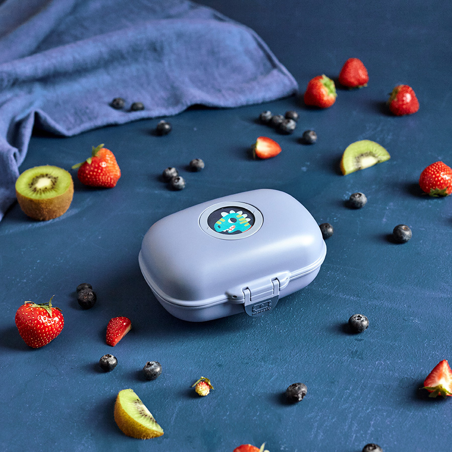 Ланч-бокс изготовлен из качественного пищевого пластика PBT (полибутелентерефталат), который полностью безопасен как для человека, так и для окружающей среды. PBT не содержат бисфенола и других вредных веществ, а также легко перерабатывается. Надежный замок обеспечивает полную герметичность. Съемные жетоны на крышке ланч-бокса позволяют детям создавать свой собственный дизайн. В комплект входят 5 различных жетонов, которые можно менять.