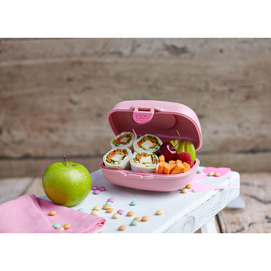 Герметичный ланч-бокс идеален для транспортировки салатов, сэндвичей и других блюд из твердых продуктов. Компактный контейнер объемом 600 мл с закругленными краями не займет много места в детской школьной сумке.