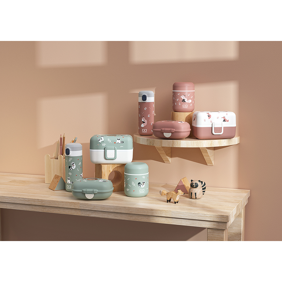 Ланч-бокс изготовлен из качественного пищевого пластика PBT (полибутилентерефталат), который полностью безопасен как для человека, так и для окружающей среды. PBT не содержит бисфенола-А и других вредных веществ, а также легко перерабатывается. Надежный замок обеспечивает полную герметичность. Съемные жетоны на крышке ланч-бокса позволяют детям создавать свой собственный дизайн. В комплект входят 4 жетона, которые можно менять.