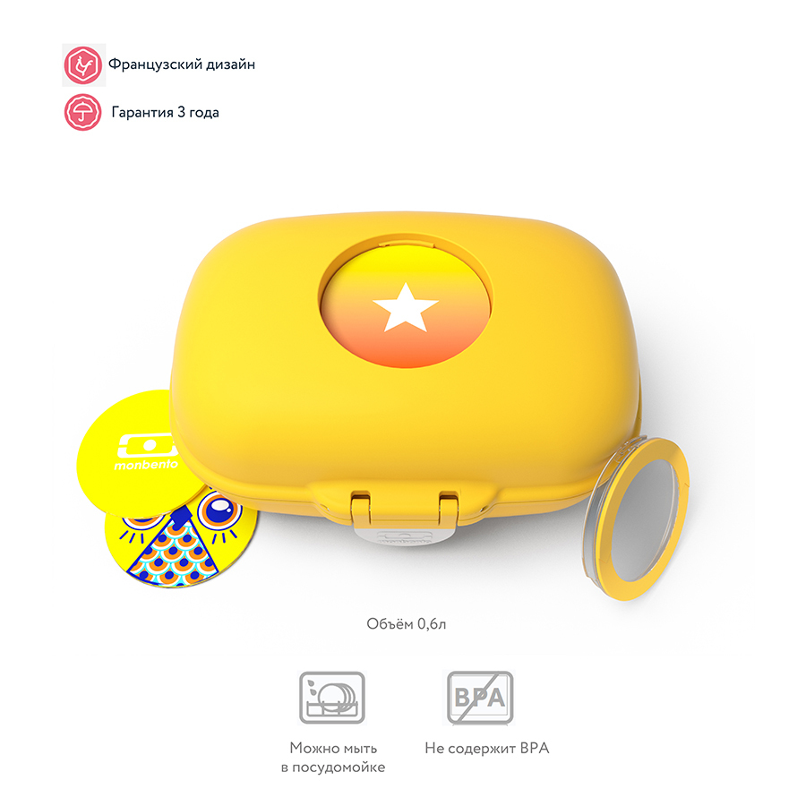 Здоровое и регулярное питание для детей – это основа их успешного и гармоничного развития. С ланч-боксами Monbento дети теперь могут вкусно и полноценно перекусить в любом месте! Благодаря удобным и ярким ланч-боксам MB Gram бутерброды не раскрошатся, и обеды будут в целости и сохранности. Контейнер герметичен и отлично подходит для транспортировки салатов, сэндвичей, нарезанных фруктов и других блюд из твёрдых продуктов. Не предназначен для транспортировки жидкостей. Вместительный ланч-бокс объемом 600 мл не займет много места в школьном рюкзаке. MB Gram сделан из 100% пищевого пластика, безопасного для здоровья. В составе контейнера отсутствует опасный для здоровья компонент BPA (бисфенол – а). Ланч-бокс не предназначен для использования в микроволновой печи, но его можно мыть в посудомоечной машине, а также хранить в холодильнике. Благодаря своей компактной форме со скругленными уголками, ланч-бокс безопасен и удобен в использовании. Съемные жетоны на крышке ланч-бокса позволяют детям создавать свой собственный дизайн. В комплект входят 5 различных жетонов, которые можно заменять, придумывая свои варианты. С яркими и забавными ланч-боксами MB Gram обеды станут еще вкуснее!