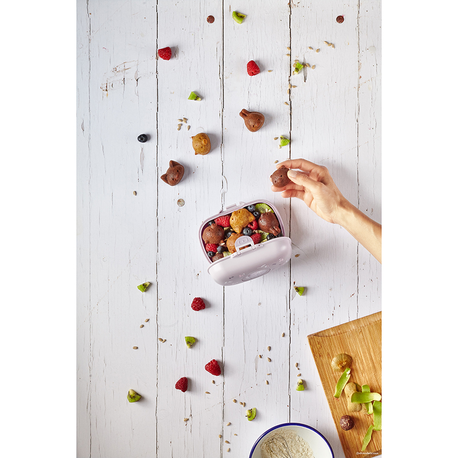Ланч-бокс изготовлен из качественного пищевого пластика PBT (полибутелентерефталат), который полностью безопасен как для человека, так и для окружающей среды. PBT не содержит бисфенола А и других вредных веществ, а также легко перерабатывается. Надежный замок обеспечивает полную герметичность. Съемные жетоны на крышке ланч-бокса позволяют детям создавать свой собственный дизайн. В комплект входят 4 жетона, которые можно менять. Ланч-бокс не предназначен для транспортировки жидкостей.