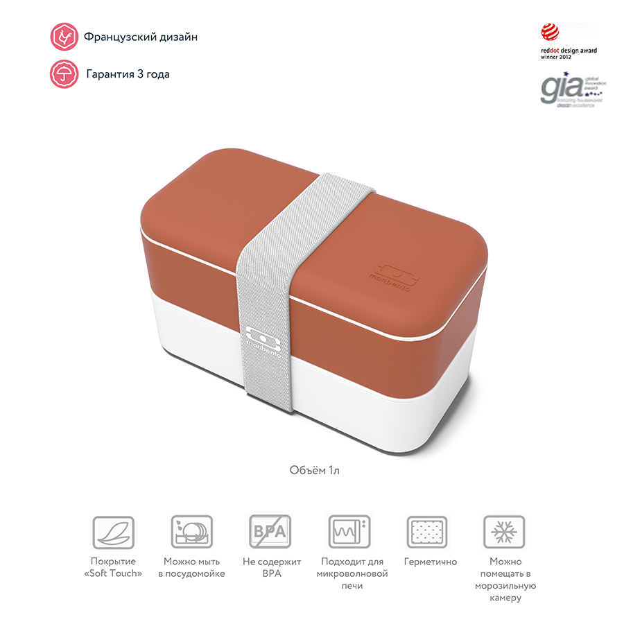 В современном мире здоровое питание — залог успеха. Ланч-боксы Monbento изготовлены из безопасного пищевого пластика и полностью сохраняют полезные свойства продуктов. Удобный формат из 2 контейнеров по 500 мл не займет много места и обеспечит полноценный прием пищи. Контейнеры фиксируются друг над другом эластичным ремешком, а также их можно использовать по-отдельности. Ланч-бокс полностью герметичен, не деформируется при нагревании, и включает прорезиненные элементы на каждой промежуточной крышке. Ланч-бокс идеален для транспортировки любых блюд, включающих густые соусы, но не рекомендован для перевозки жидкостей.