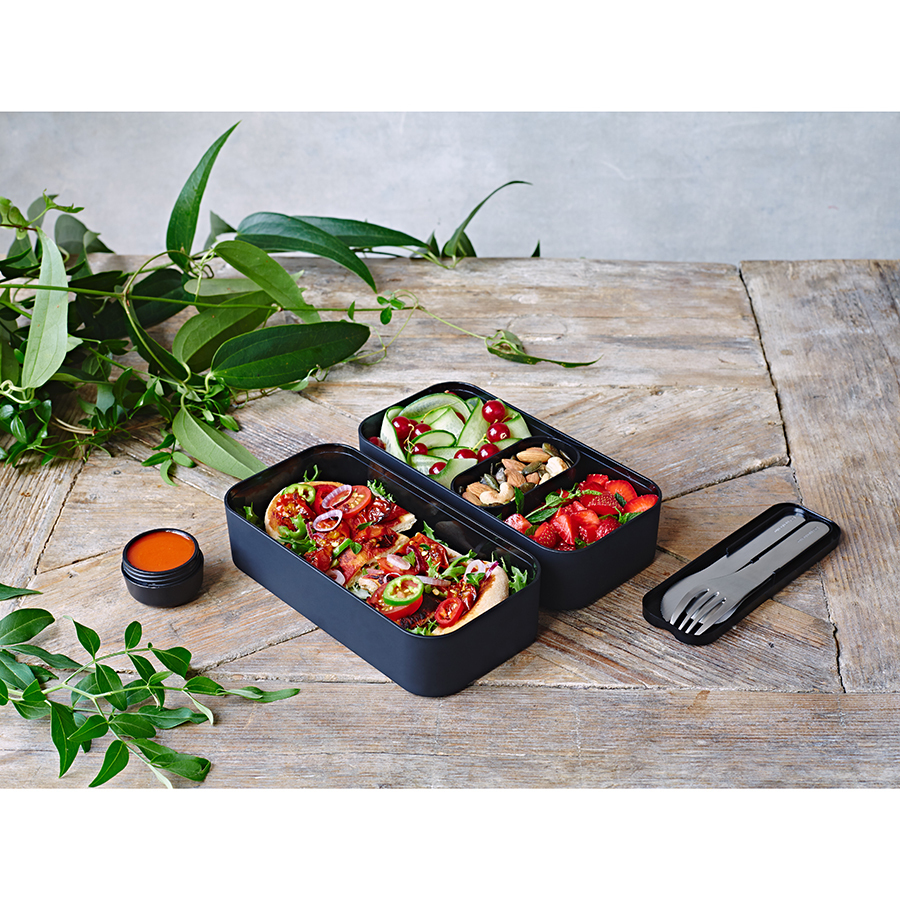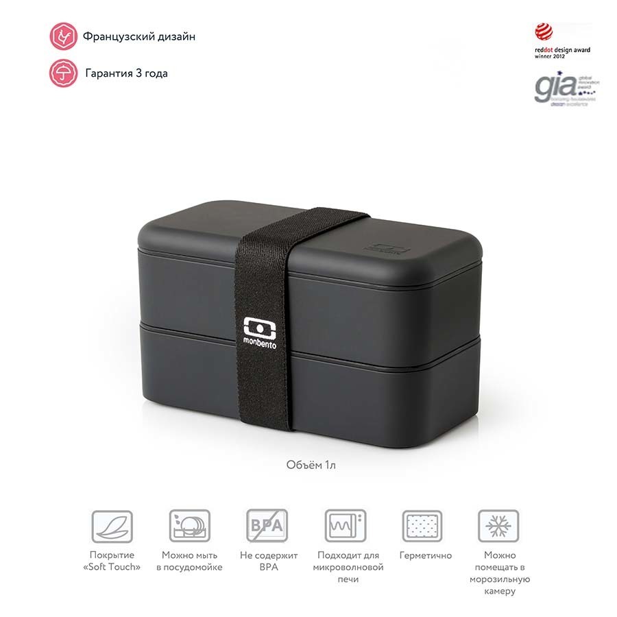 В современном мире здоровое питание - залог успеха. Ланч-боксы Monbento полностью сохраняют полезные свойства продуктов, герметичны и изготовлены из безопасного пищевого пластика. Удобный формат из 2 контейнеров по 500 мл не займет много места и обеспечит полноценный прием пищи. Контейнеры фиксируются друг над другом эластичным ремешком, а также их можно использовать по-отдельности. Ланч-бокс является герметичным, не деформируется при нагревании, и включает прорезиненные элементы на каждой промежуточной крышке. Ланч-бокс идеален для транспортировки любых блюд, включающих полугустые соусы, но не рекомендован для перевозки жидкостей. Высококачественный пластик PBT (полибутелентерефталат) полностью безопасен как для человека, так и для окружающей среды. Материал перерабатывается гораздо легче, чем большинство пластика на рынке. Контейнеры не содержат бисфенола и других вредных веществ, их можно разогревать в микроволновой печи и мыть в посудомоечной машине. Верхнюю крышку контейнера рекомендуется мыть на деликатном режиме в посудомоечной машине. Практичность и функциональность удачно сочетается с потрясающим дизайном! Ланч-бокс MB Original представлен в многочисленных расцветках и имеет специальное покрытие "soft touch protect", приятное и гладкое на ощупь. На таком материале совсем не остается следов. Ланч-бокс не впитывает запахи, легче моется и дольше служит, не изменяя свой вид даже от соприкосновения с красящими продуктами. Покрытие обладает высоким уровнем ударостойкости: не протирается и не царапается. - общий объем - 1 литр; - в крышке каждого контейнера - специальная пробка, которую нужно вытащить, если вы разогреваете еду; - в комплект входит эластичный ремешок и соусница, которая подойдет для разделения блюд.
