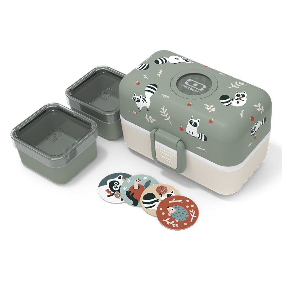 Ланч-бокс изготовлен из качественного пищевого пластика PBT (полибутилентерефталат), который полностью безопасен как для человека, так и для окружающей среды. PBT не содержит бисфенола-А и других вредных веществ, а также легко перерабатывается. Надежный замок обеспечивает полную герметичность. Съемные жетоны на крышке ланч-бокса позволяют детям создавать свой собственный дизайн. В комплект входят 4 жетона, которые можно менять.