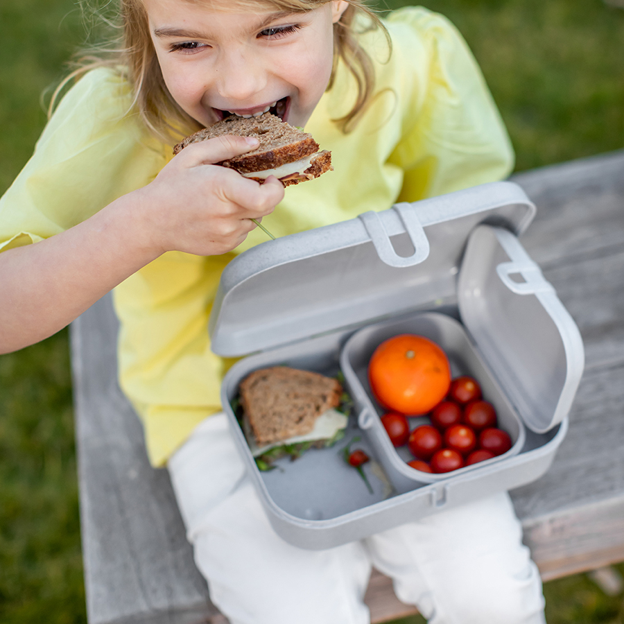 Ланч-бокс Pascal S – небольшая коробка для школьных обедов или перекусов на работе. За счет обтекаемой формы и плавных линий емкость можно переносить в сумке или рюкзаке без риска повредить тетради, документы или другие важные предметы. Бокс вмещает орехи, печенье, фрукты и другие закуски. Изготовлен из органического материала на основе целлюлозы, не содержит формальдегидов, бисфенола А. Ланч-бокс можно мыть в посудомоечной машине.