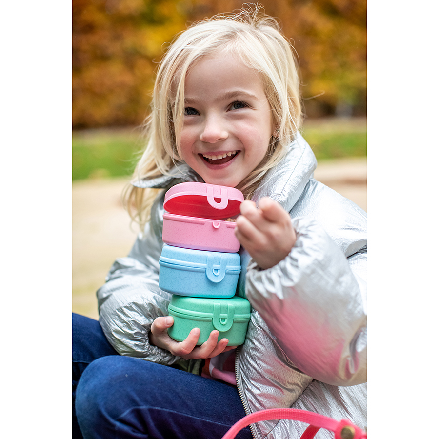 За счет обтекаемой формы и благодаря надежному зажиму емкость можно переносить в сумке или рюкзаке без риска повредить тетради, документы или другие важные предметы. Бокс вмещает орехи, печенье, фрукты и другие закуски. Изготовлен из органического материала на основе целлюлозы, не содержит формальдегиды, бисфенол-А. Помещается в более крупные ланч-боксы Pascal S и L.