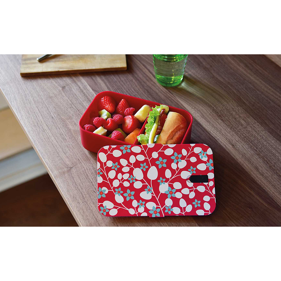 Герметичный контейнер сохраняет свежесть сэндвичей, салатов, десертов, а регулируемая стенка позволяет разграничивать два разных блюда. Ланч-бокс имеет закрывающееся вентиляционное отверстие. Пластик не содержит бисфенола А.Можно мыть в посудомоечной машине и греть в микроволновой печи, предварительно сняв крышку.