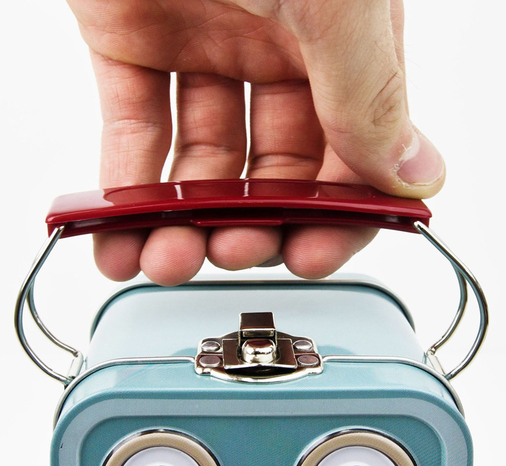 Сохраните вашу еду в целости и сохранности с помощью этого ланч-бокса в стиле ретро. Он сделан в виде робота, и в нём достаточно места, чтобы вместить любой вариант вашего обеда: сэндвичи, фрукты, шоколадные батончики, что угодно! Забудьте про пластиковые пакеты – носите свой ланч стильно! Отличный подарок для детей до 99 лет.