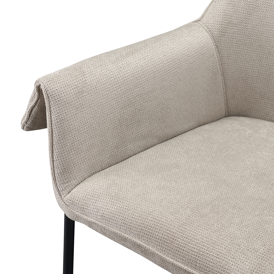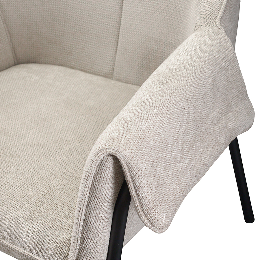 Лаунж-кресло Aline с обивкой из фактурного шенилла выглядит уютно и в то же время благородно. Материал приятный на ощупь и простой в уходе. Комфорт при сидении достигается за счет высокой наклонной спинки, глубокой посадки и удобных мягких подлокотников. Светлая мебель с лаконичным силуэтом идеально вписывается в интерьер гостиной, рабочего кабинета или спальни, оформленных в скандинавском стиле, лофт, эклектика, фьюжн, неоклассика и др.